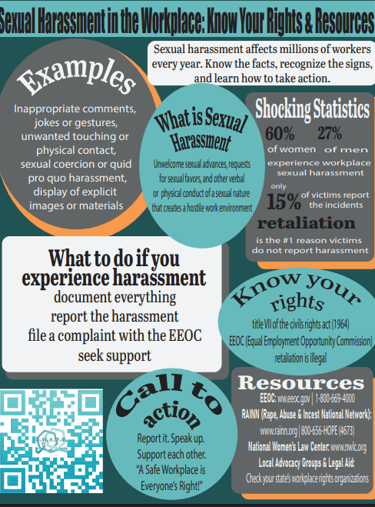 Find essential resources, contact numbers, and informative posters on sexual harassment and assault here.